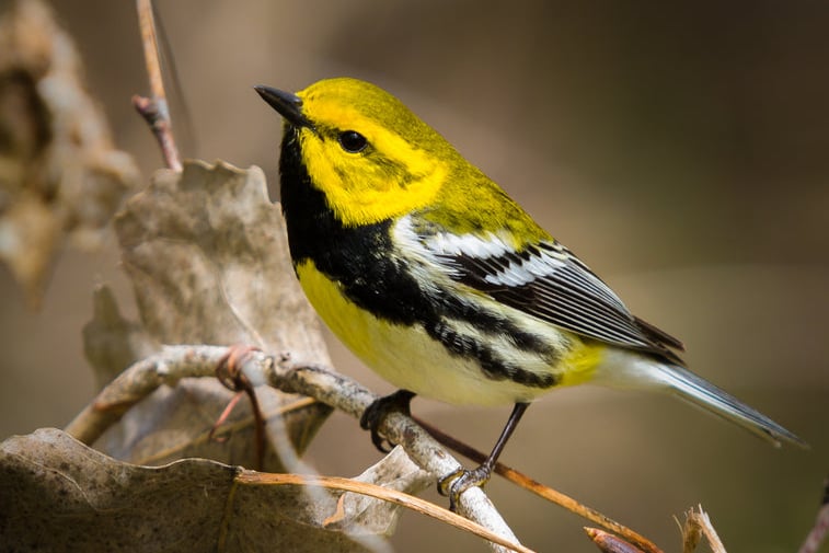 This small warbler migrates to Central America, utilizing the protecting cowl of shade espresso farms to forage for bugs within the mid and higher cover.