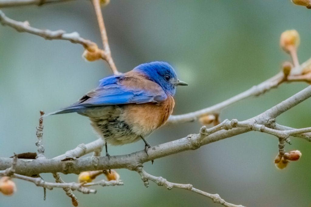 The Western Bluebird nests in cavities and depends on birds like woodpeckers to supply them with appropriate holes.